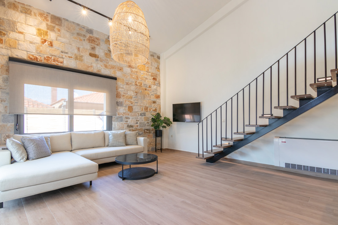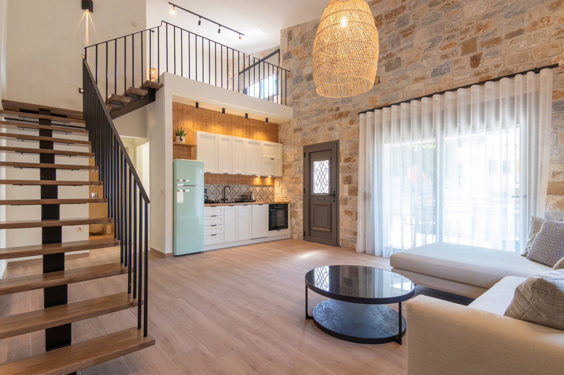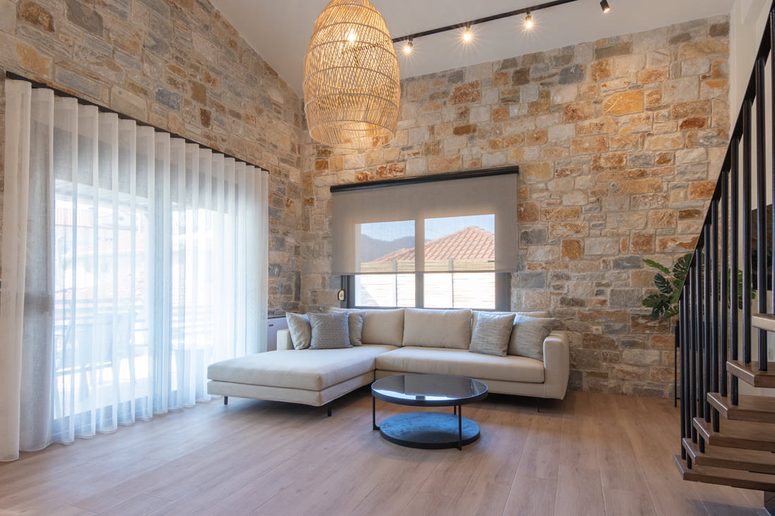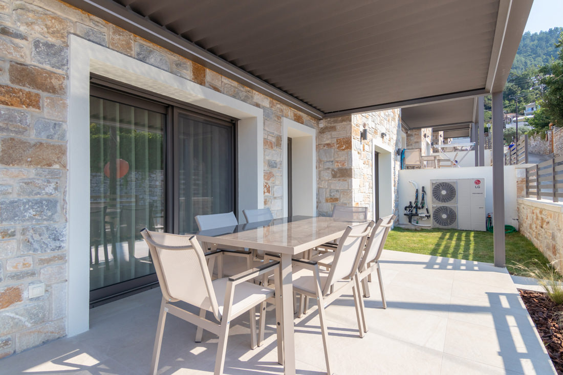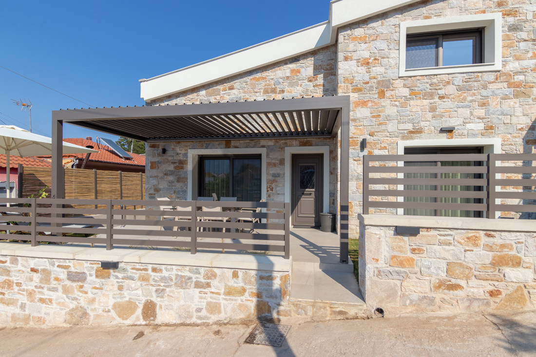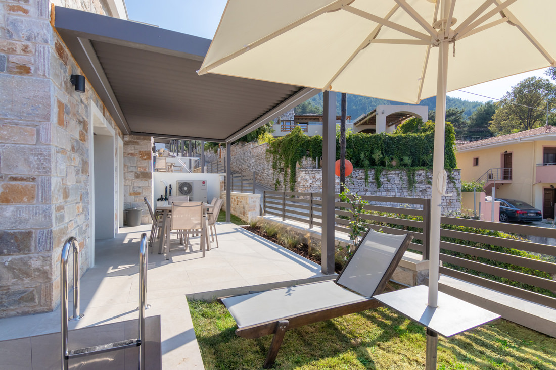 Συγκρότημα τεσσάρων κατοικιών με λιθοδομή και ιδιωτική πισίνα στην Σκάλα Ποταμιάς.
